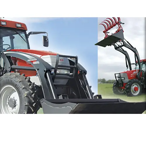 The FM-550 loader is designed for strength and functionality. Its sleek low-profile shape provides clearer sightlines and amazing visibility in all directions. The patented lineless cylinders and hydraulic system, superior free flow bucket, Hydra-Snap™ manifolds, rotational indicators and extra heavy bucket with bolt-on blade offers heavy-duty users all the extras to match the higher demands of today's large front-wheel assist tractors.