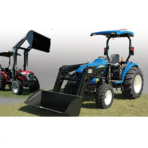 This mid-sized, high-strength loader has a great profile. It has a custom tower, raised to accommodate increased turning ability in tractors such as the Ford/New Holland Super Steer line. For the everyday heavy user or contractor. Extra features give it a professional feel & performance, great profile, bucket linkage, tapered bucket, reinforced arms and in-line valve with precision joystick. Fits 2WD tractors from 20 to 70 HP and 4WD tractors from 20 to 65 HP.